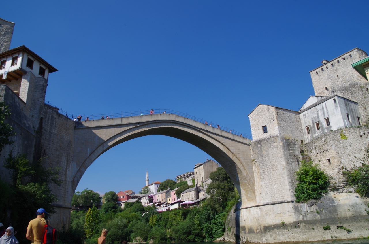 1556年オスマン朝支配したの時代に建てられた橋。橋台を用いず、両岸からアーチ状にかかる橋の美しさと技術の高さに驚かされる。近くの博物館では、橋の構造や破壊から再建の様子をビデオでみることができます。