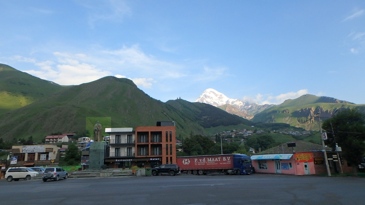 ウィキペディアによると、19世紀初頭にロシア帝国が進出してきた時に、地元の領主Gabriel Chopikashvili-Kazbegiはロシアに忠誠を誓い、その姓であるKazbegiが村の名前になったとのこと。その後、旧ソ連時代の1925年に正式に村の名前として認められたようです。