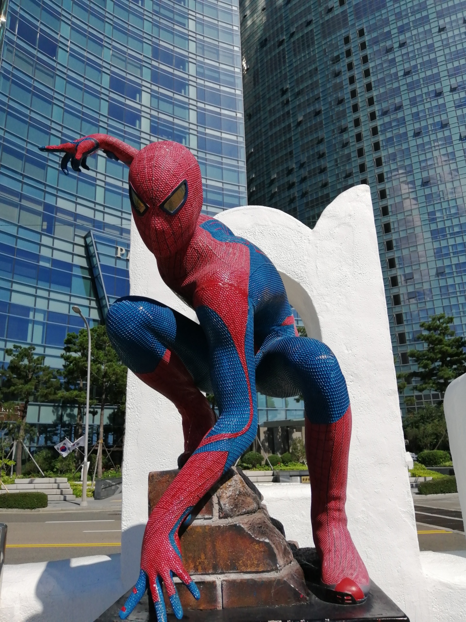 地下鉄2号線冬柏駅で下車し、1番出口から徒歩で20分弱で海岸沿いに出ると<海雲台映画通り>に出ます。オブジェや路上のアート、防波堤の壁にタイル画で映画のワンシーンや映画のポスターなどが展示されています。なかでもスパイダーマンはリアルでした。海雲台駅で下車し失敗しましたのでくれぐれもお間違いなく。