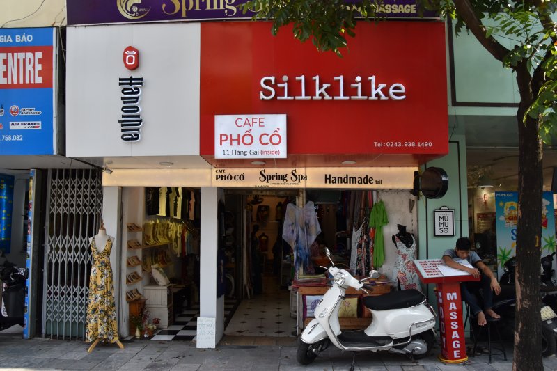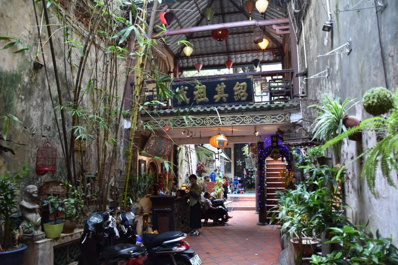 眺望がすばらしい。ホアンキエム湖をまじかに見える景色が広がっていた。ハノイの旧市街にあるが、入り口がわかりにくい。シルク屋さんがあって、外見はその店としか思えない店なのだが、よく見ると、シルク屋さんの看板に含まれるように店名がある。そこで自信をもって店内に入ると、奥に細い通路があり、そこを進むと中庭のような場所がある。左にあるカウンターで飲み物、食べ物を注文して、その右側にある階段を上がっていく。二階へ、三階へ、さらに螺旋階段で四階へ上がると、そこがこのカフェなのだ。テーブルが並んでいて、奥へ行くと、眺望が開け、ホアンキエム湖がみえる。意外な眺望が開けるので、それだけ価値がある不思議なカフェだった。隣にあるビルの屋上に最近建造物ができ、それができる前は、もっと眺望がよかったそうだ。ベトナムコーヒー3万ドン(150円)だった。