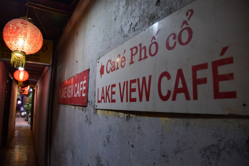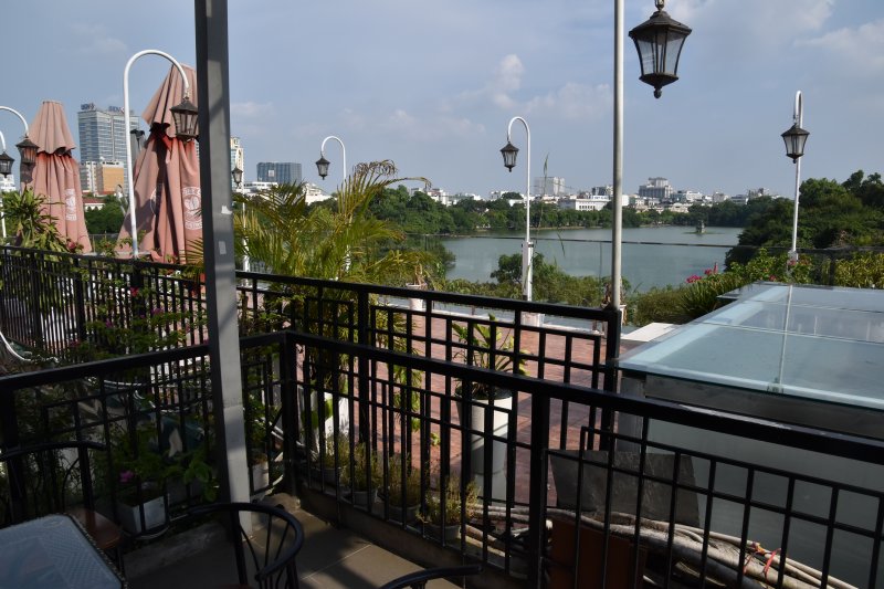 ホアンキエム湖を眺望するカフェ。入り口が分かりにくいので、それだけ価値あり