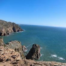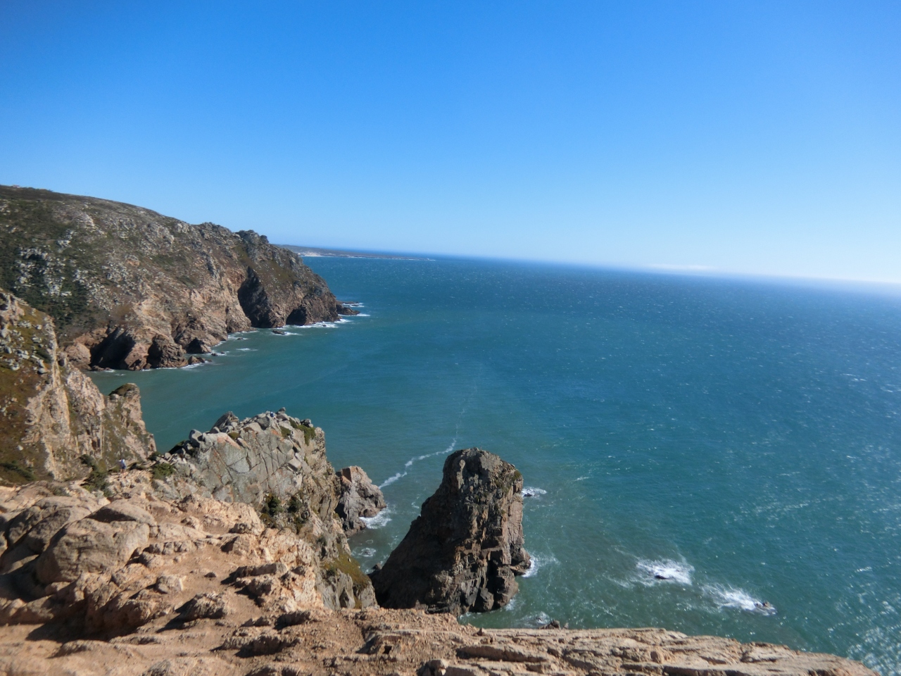 シントラから403番カスカイス行きのバスに乗り、40分ぐらいでロカ岬に着いた。ユーラシア大陸最西端のロカ岬に来たんだと思うと感慨深くなる。よく晴れ渡って、果てしなく続く青い海が最高。断崖絶壁の素晴らしい風景が続いている。ただこの辺りは風がすごく強い。帽子が飛んで行ってしまいそうなので要注意。