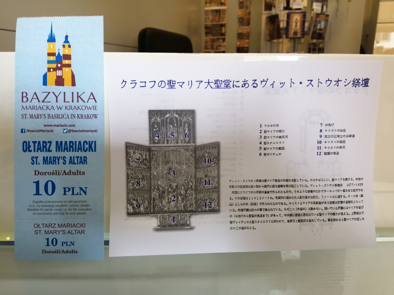 土曜日の午後3時に訪れたときには、塔に上がるチケットは終了していて、中に入るチケット10zを購入すると、日本語の説明を書いた紙をもらえました。