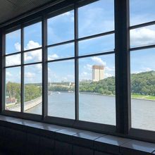 広いホームからの川の眺めがすがすがしくて