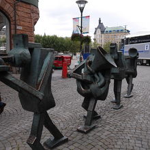 レストラン、カフェ、ショップが立ち並んでします。薬局「Apoteket Lejonet」もこの通りにあります。薬局の近くにはおもしろいマーチングバンドのオブジェが並んでいます。
