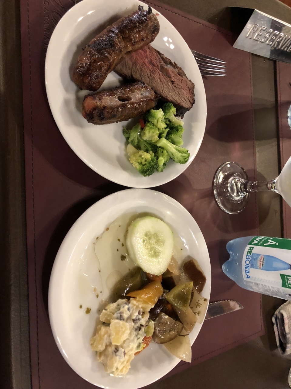 イグアスの滝アルゼンチン側にあったレストランでアルゼンチン料理のパルジャータという肉料理を食べました。大きなレストランでテラス席もかなり広く、イグアスの滝名物のハナグマが餌を求めて何匹も出没していました。