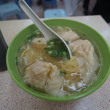 大ぶりのワンタンは4個入っていてプリプリのえびが入っています。