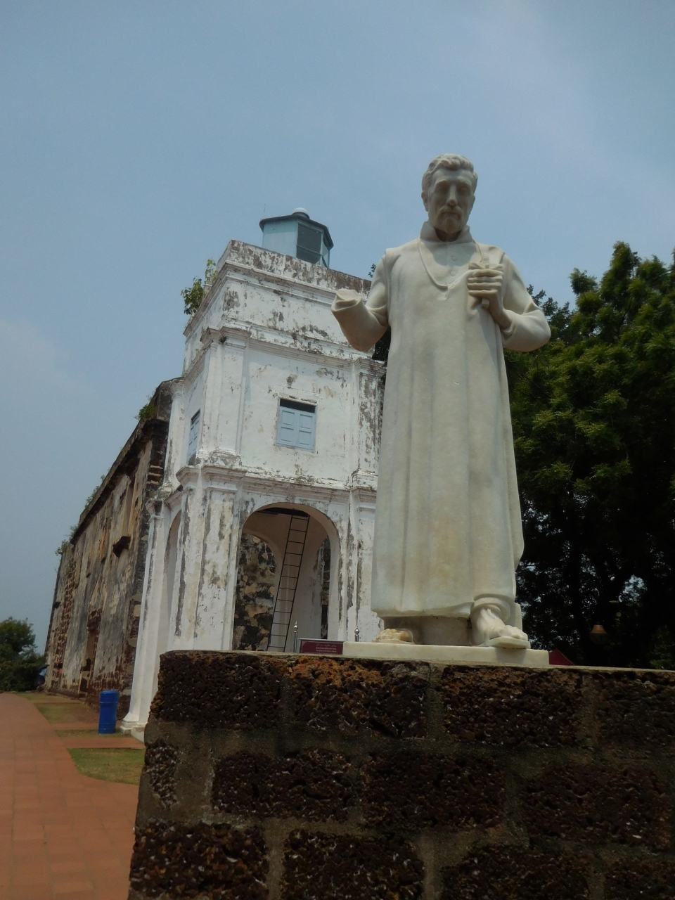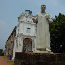フランシスコザビエルの遺骨が一時安置されていた場所だそうで、今でもそのあとが残っています。ザビエルの像もたっていますが、我々が知っているものよりもかなり若いころのザビエルさんでした。