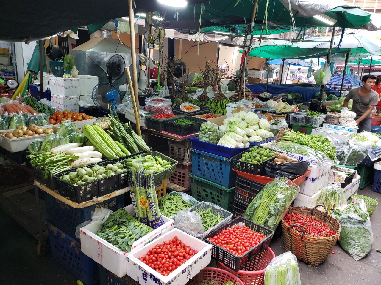 今年よりMRTのブルーラインの試運転が開始となり、王宮周辺の観光がぐっと楽になりました。こちらのマーケットへはサナムチャイ駅を降りてすぐのアクセスになります。お花や野菜がたくさんあって見飽きないです。奥の建物にスターバックスがあるけど似つかわしくないことこの上ない。