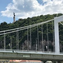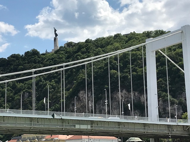 ドナウ川クルーズでこの橋を知りました。スタートして国会議事堂の方へ向かい、マルギット島の前でUターンして、セーチェニ鎖橋をくぐったその先にこのエルジェーベト橋でした。白っぽい色のアーチが綺麗な橋です。説明を聞くとハンガリー人に人気のエルジェベート妃の名前を付けられた大切な橋だそうです。