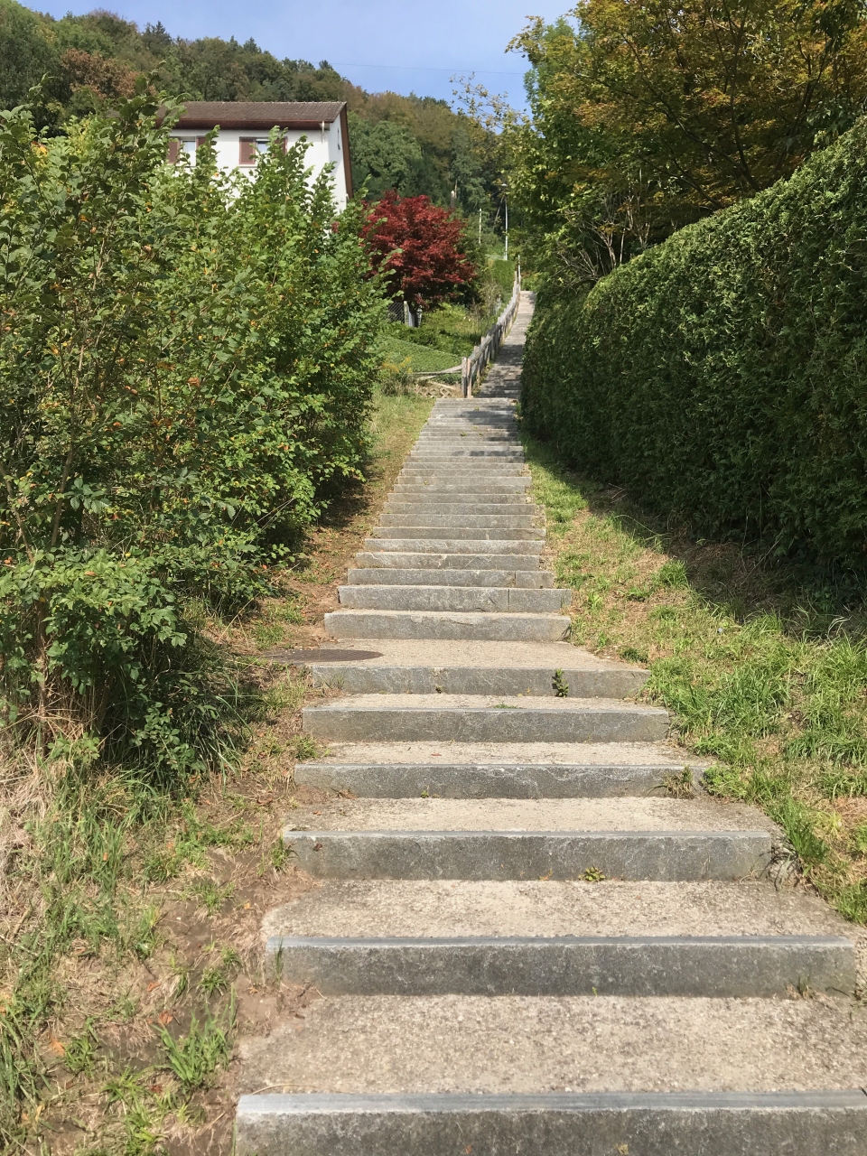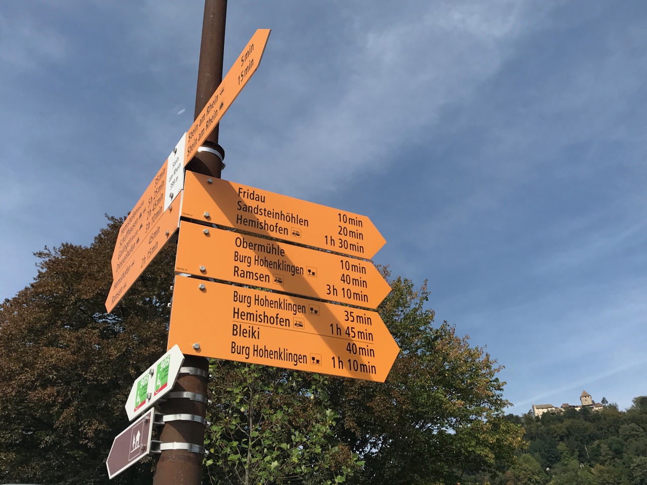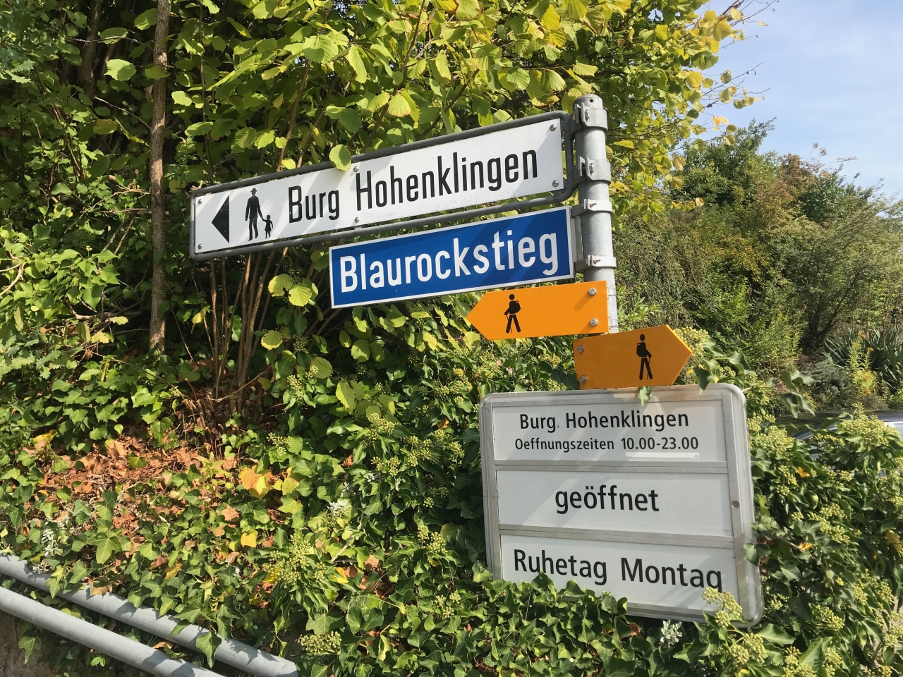 クールズ船を降りたらまっすぐ上に登り、駐車場を抜けたら案内板がありましたので、直線的に登って行く35分のルートで、ホーエンクリンゲン城を目指しました