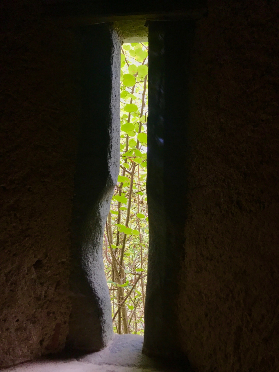 門から中に入ると、「おーお城 ! 」と感じるような細い通路をまがりくねりながら進み、途中の壁に開けられた狭間か