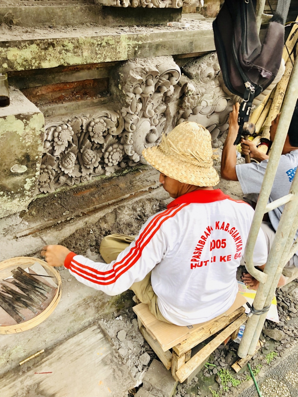 近くでは壁の修理なんかをバリの職人さんがやっていて