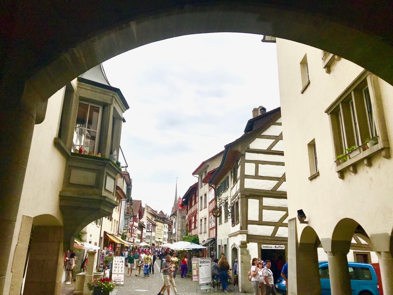 私はクルーズ船で船乗り場からホーエンクリンゲン城に登った後、街に戻ってウンター門からメインストリートのウンター通りに入りました