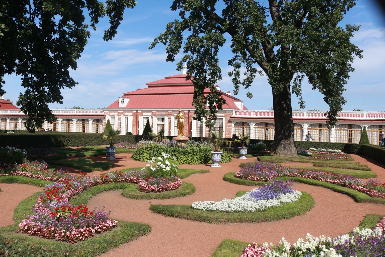 現地ツアーで行きました。ペテルゴフ宮殿の有名な噴水の横にある階段を下りていくと、公園があります。比較的大きな公園で、全部見て回るとすると、2時間くらいはかかるのではないかと思います。公園には、様々な形の噴水やきれいな花壇などがありました。地元の人もいる感じがしました。