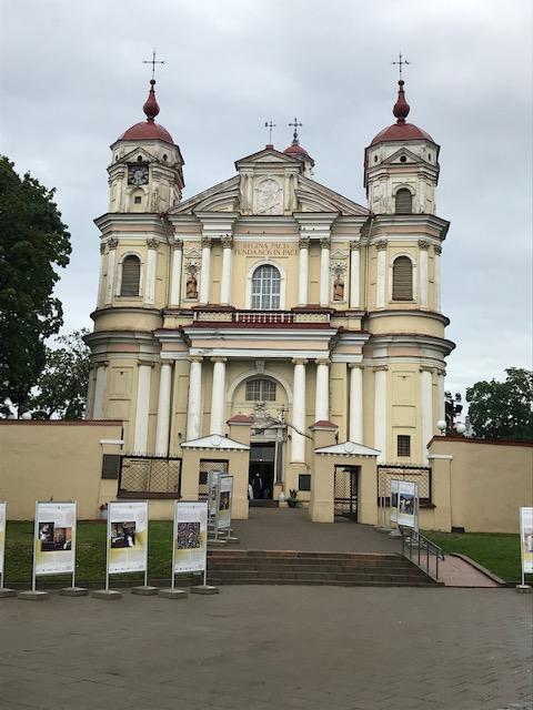 旧市街がからちょっと離れた場所にあるので歩いて行くのを諦めてバスで行くことにしました。ケディミノ大通りのバス停からネリス川沿いの道路を進みます。バス停と教会の間に大きなロータリーがあって、それを横断するのに一苦労しました。教会内部に入ってみると、漆喰の彫刻が見事でしばらく見とれてしまいました。