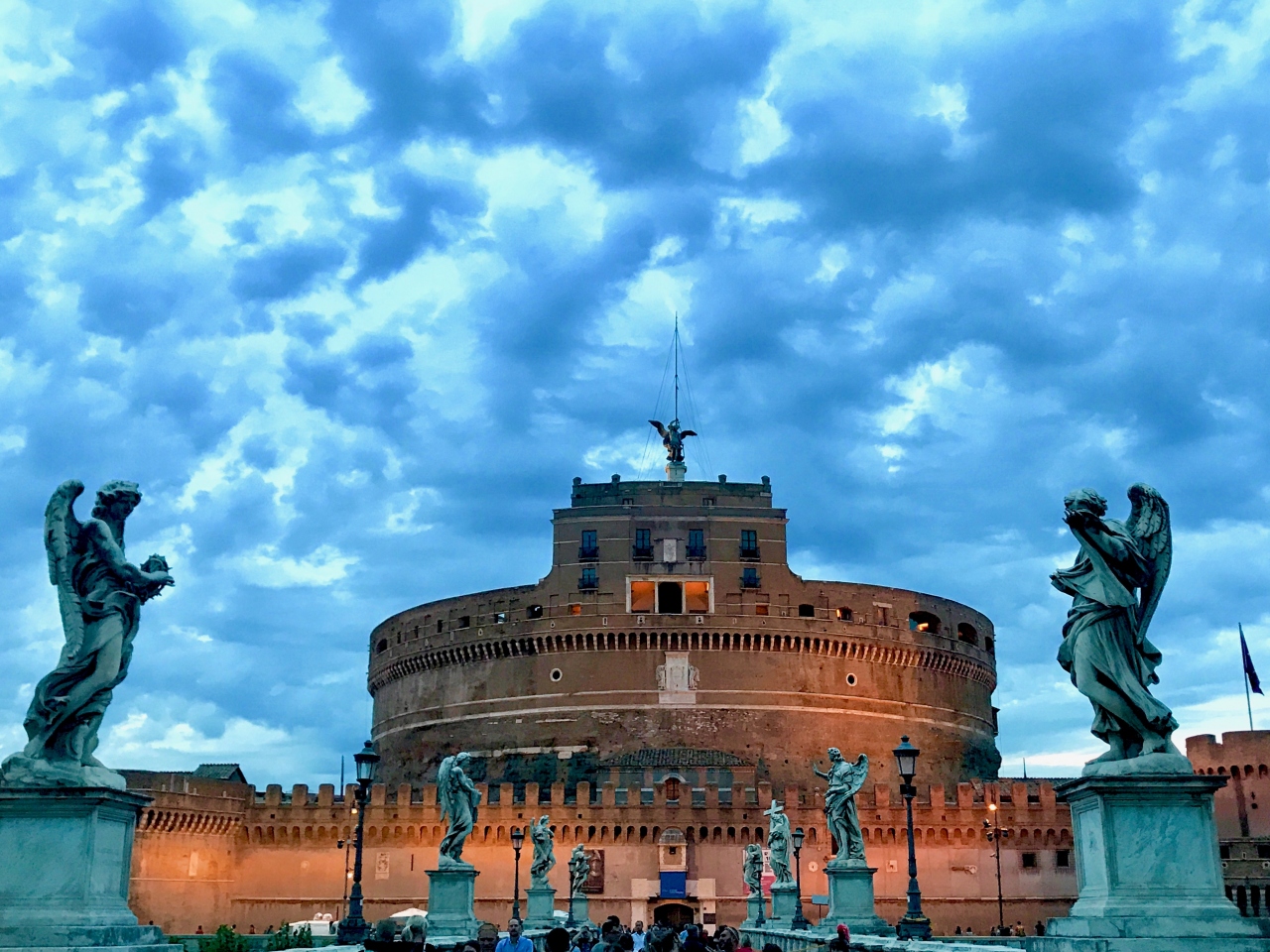 ローマ国立博物館前のバス停から18:30頃出発し、市内をただバスに乗り一周する予定でしたが、コロッセオ、フォロロマーノ、ヴィットリオ・エマヌエーレ2世記念堂を車窓から眺めていると、次のサンタンジェロ城がライトアップされて綺麗だったので、急遽バスを下車しました