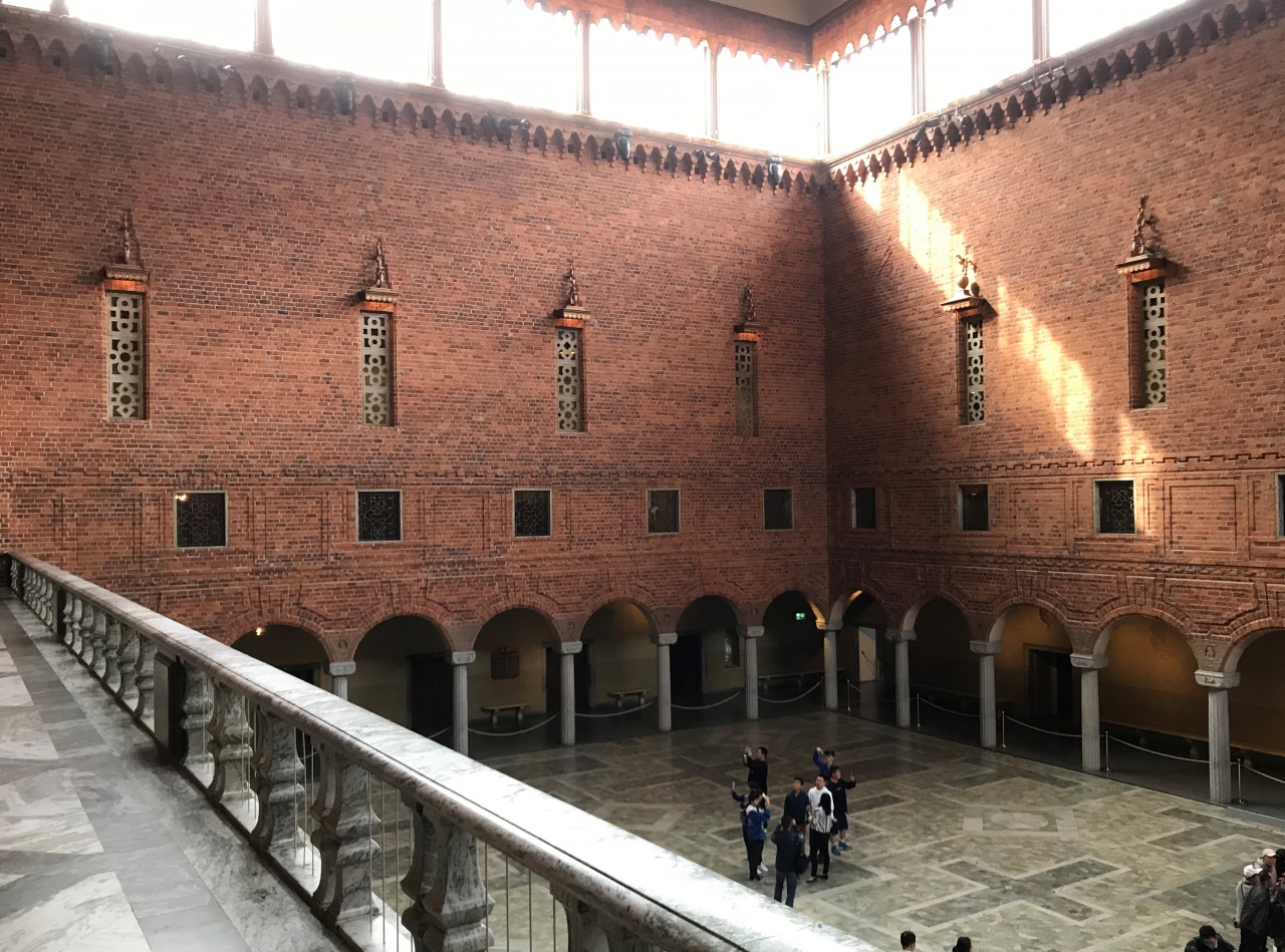 ノーベル賞授賞式の会場となることで有名な市庁舎で、外観も美しいです。内部の見学は、ガイドツアーのみで見学できます。朝一番の9:00の英語ガイドツアーに参加しました。英語のガイドツアーは、以降、30分おきに16:00まで開催されています。その他の言語のツアーは、ドイツ語、スウェーデン語、中国語、スペイン語、イタリア語で日本語はありません。料金は、120krでした。