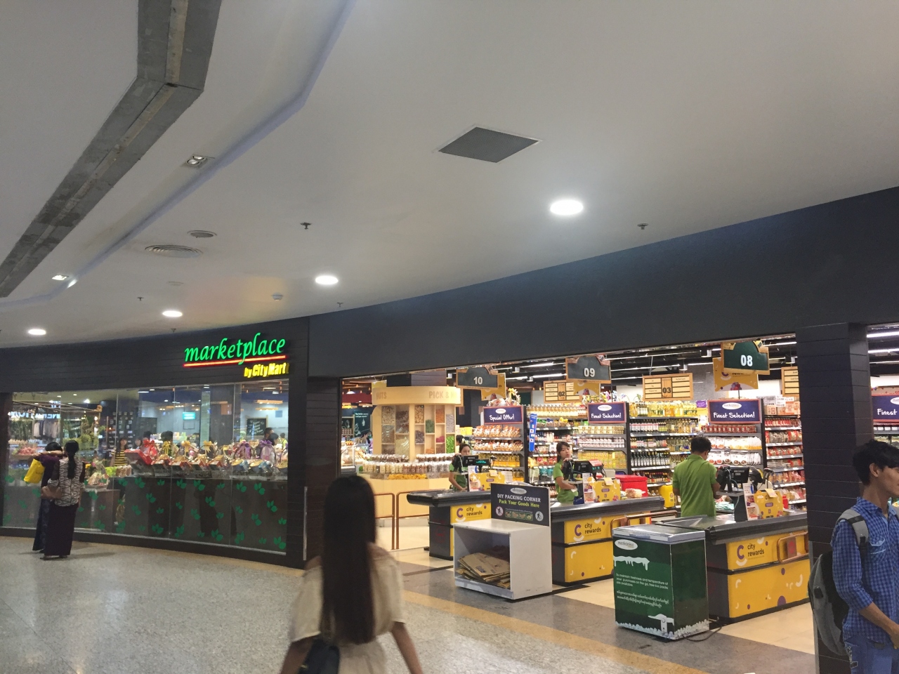 ミャンマープラザの二階にマーケットプレイスというスーパーマーケットが入店していました。日用品から生鮮食品まで幅広くそろえています。またチーズなどの輸入品やサラダ・そうざいなどもあり外国人に使いやすい印象です。