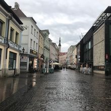 エストニアの首都タリン の旧市街の入口のヴィル門を通り抜けると、このヴィル通りがまっすぐ伸びています。旧市街のメインストリートです。行きはすぐに右に曲がって城壁沿いを太っちょマルガレータまで行きましたが、帰りは市庁舎広場からこのヴィル通りを通って戻ってきました。かなり広い通りで、左右にはおみやげ屋さんなどが並んでいます。
