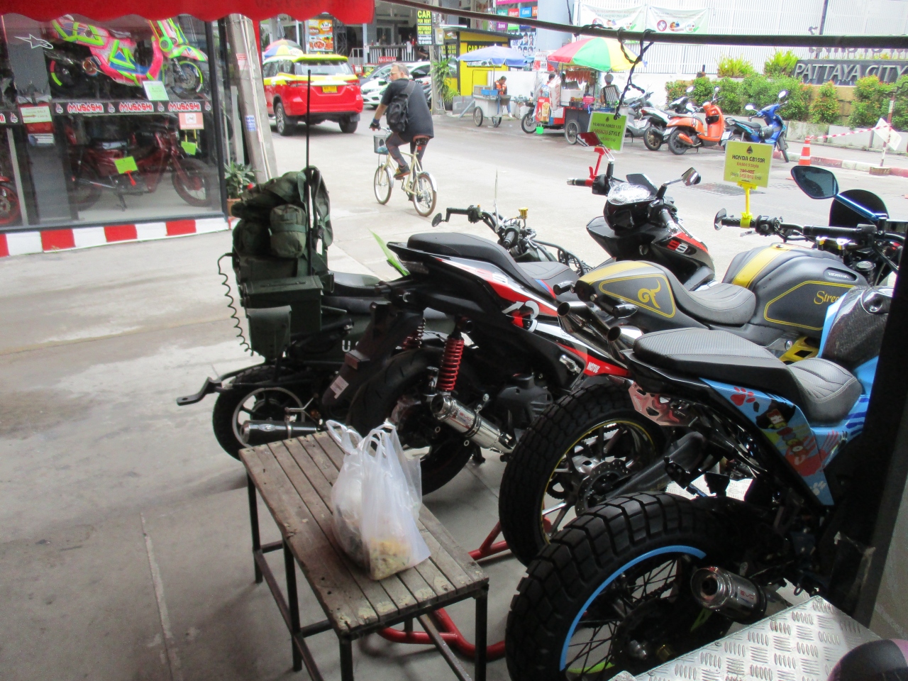 パタヤは大きい街ではないのでビーチロード、セカンドロード周辺はソンテウで回れますが、郊外に行くのであればレンタカーが良かったです。行き先にもよりますが、バイクは専門店だけでなくレストラン、バー、洗濯屋が扱っていました。それだけニーズが多いということでしょう。1000バーツのデポジットとガスを給油して返却する必要がありました。