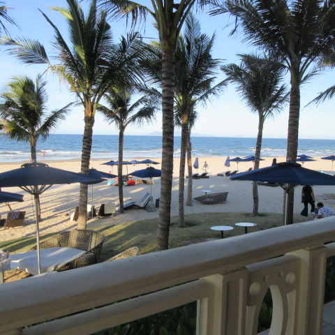 ダナンの大型リゾートホテルが並ぶ海岸です。泳いでいる人は少ない・・サラサラの砂ですが、6月は灼熱で砂がとても暑かったです。サンダルを履かないとやけどしそう・・高温殺菌されて清潔な砂、だと思いました。波はそれほどありませんでした。