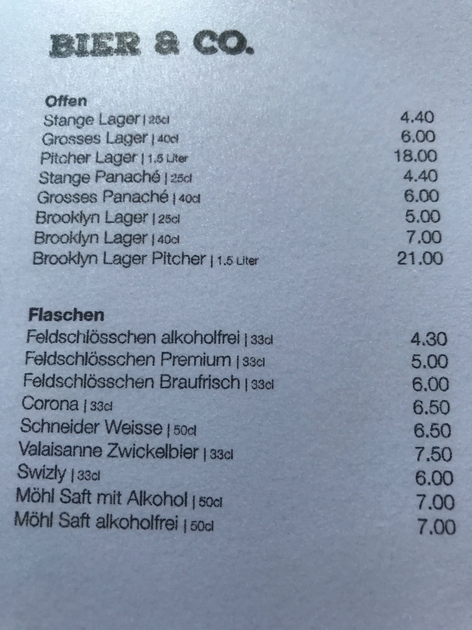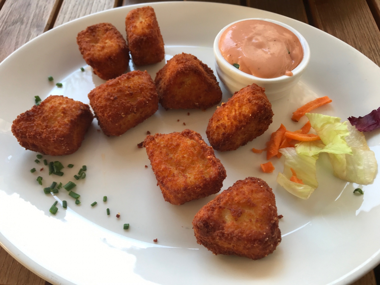 メキシカン・チキン・ナゲット( 8p = 14CHF)は、カリカリに揚がっており、ピリ辛ソースとの相性も抜群でビール(4.3CHF)によく合いました