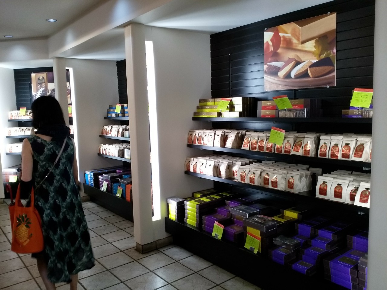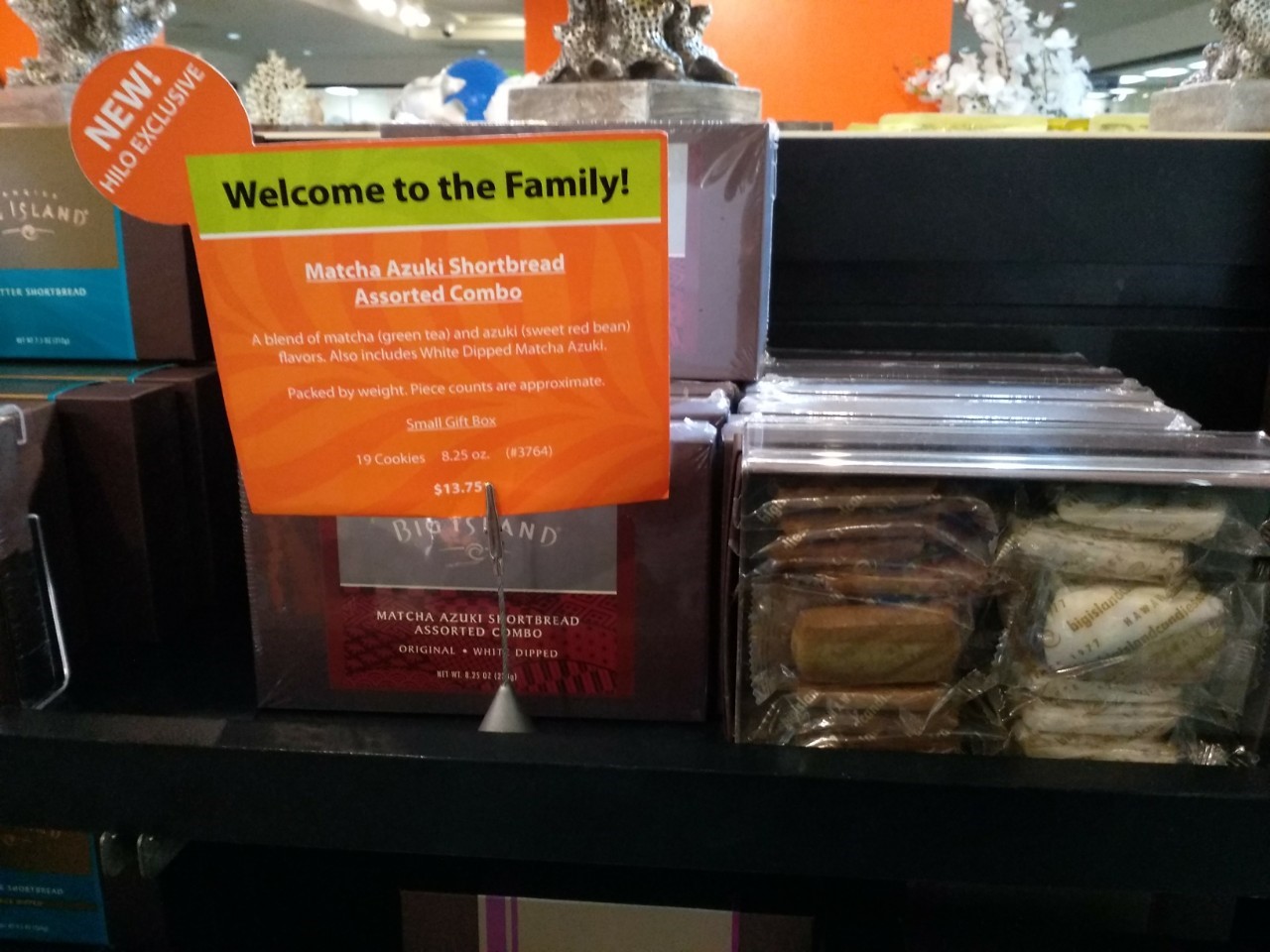 最初はツアーで訪れて何と素晴らしいお店なんだと思い沢山のお土産を購入し帰国後配ったら美味しいと高評価で自分たちもせっかくハワイ島に行くんだったらまた行きたいと思って毎回訪れています。いつも新製品が発売されていますが今回は抹茶・小豆クッキーでした。日本人好みのお菓子を作りましたね。試食もし美味しかったので四箱購入しました。今回もまたポイントが一杯になったのでオレンジ色した保冷バッグを頂きました。記念になる特別お土産です。広出の観光が事情により短縮してしまったのでゆっくり買い物をしてゆっくり休んで次の観光地へ移動しました。