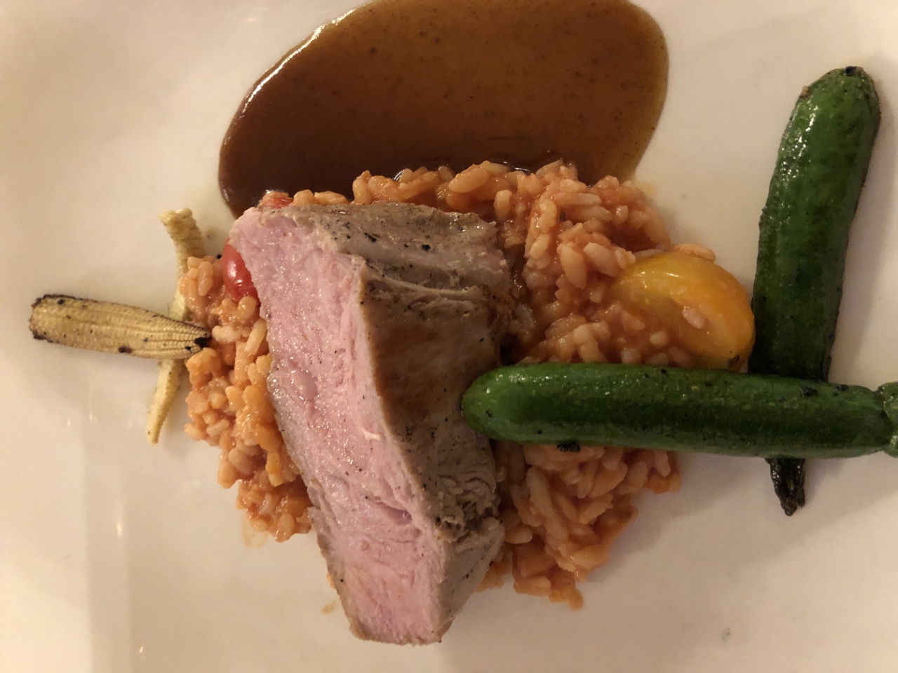 ディナーコンサートの性質上か、ゆっくりした給仕でした。演奏→料理→演奏→料理と交互で、料理を食べている間は演奏はなく、会場の人たちが食べ終わるのを見計らって演奏者が出てきて演奏を始めました。