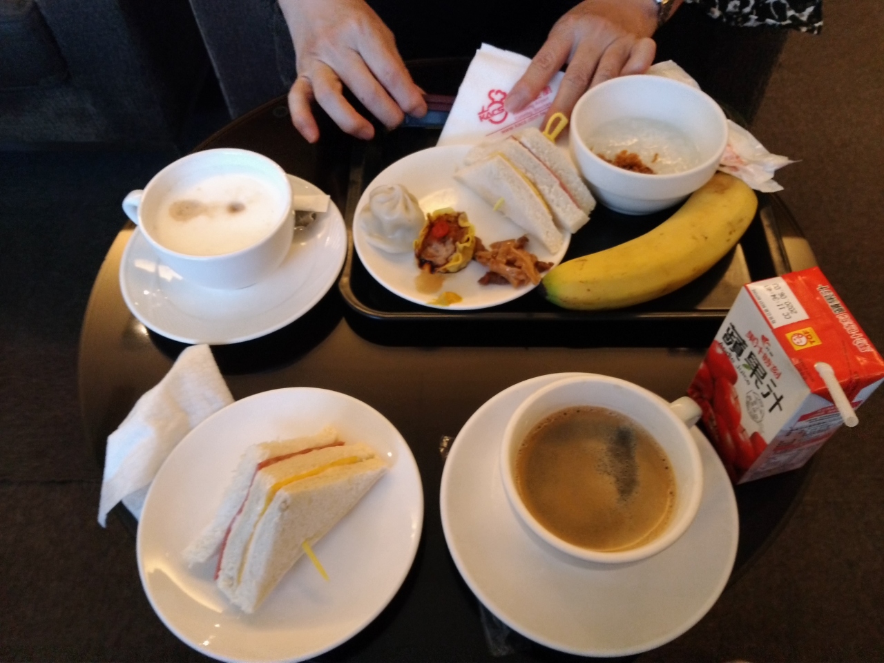そして普通に会話を始めました、ラウンジが静かなので普通の声でもうるさいくらいです。