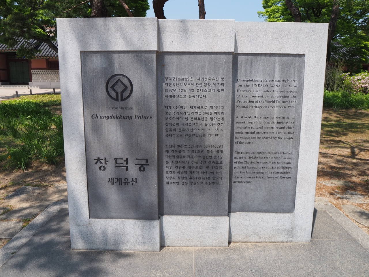 15世紀初頭から300年弱、朝鮮王朝の正宮としての役割を果たした宮殿で、世界遺産登録されております。自然と建築との卓越した配置というのがその理由で、前苑=建築、後苑=自然といった具合に、両者を見て初めてその価値が分かる場所だと思います。