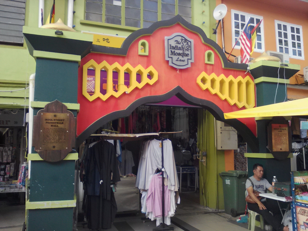 インディアストリートという名が付いていますがインドテイストはほとんどありません。ローカルなインドレストランを求めて行きましたがこれまた皆無。普通のアーケード露店市場です。唯一の見所と言えば通りの中ほどにある「Indian Mosque Lane」と書かれたゲートのような看板のみ。しかしこれもなんちゃってインド風。一体なんでこんなに名に?昔はそうだったということでしょうか…。一応この辺りはインド人街。インドらしさを求めたいならインディアストリート北側、Jalan Gambirにあるオールドインディアモスク周辺に“っぽい”スパイス屋が何軒か並んでいます。