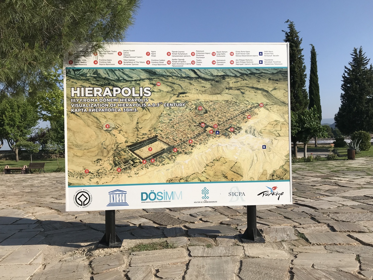 ツアーで行きました。パムッカレの石灰棚に行く途中、通っているのがヒエラポリス遺跡です。違いとても広い。見どころが点在。陽をさえぎるものが無いので夏場は帽子や飲み物、天気の急変用に雨具も携行してください。フリーだったらパムッカレ温泉や石灰棚を含め丸一日は時間を取りたい場所でした。