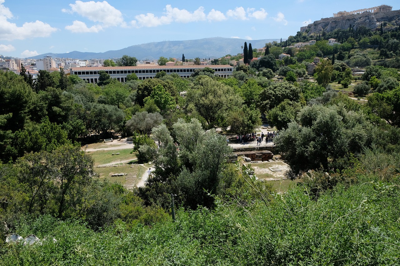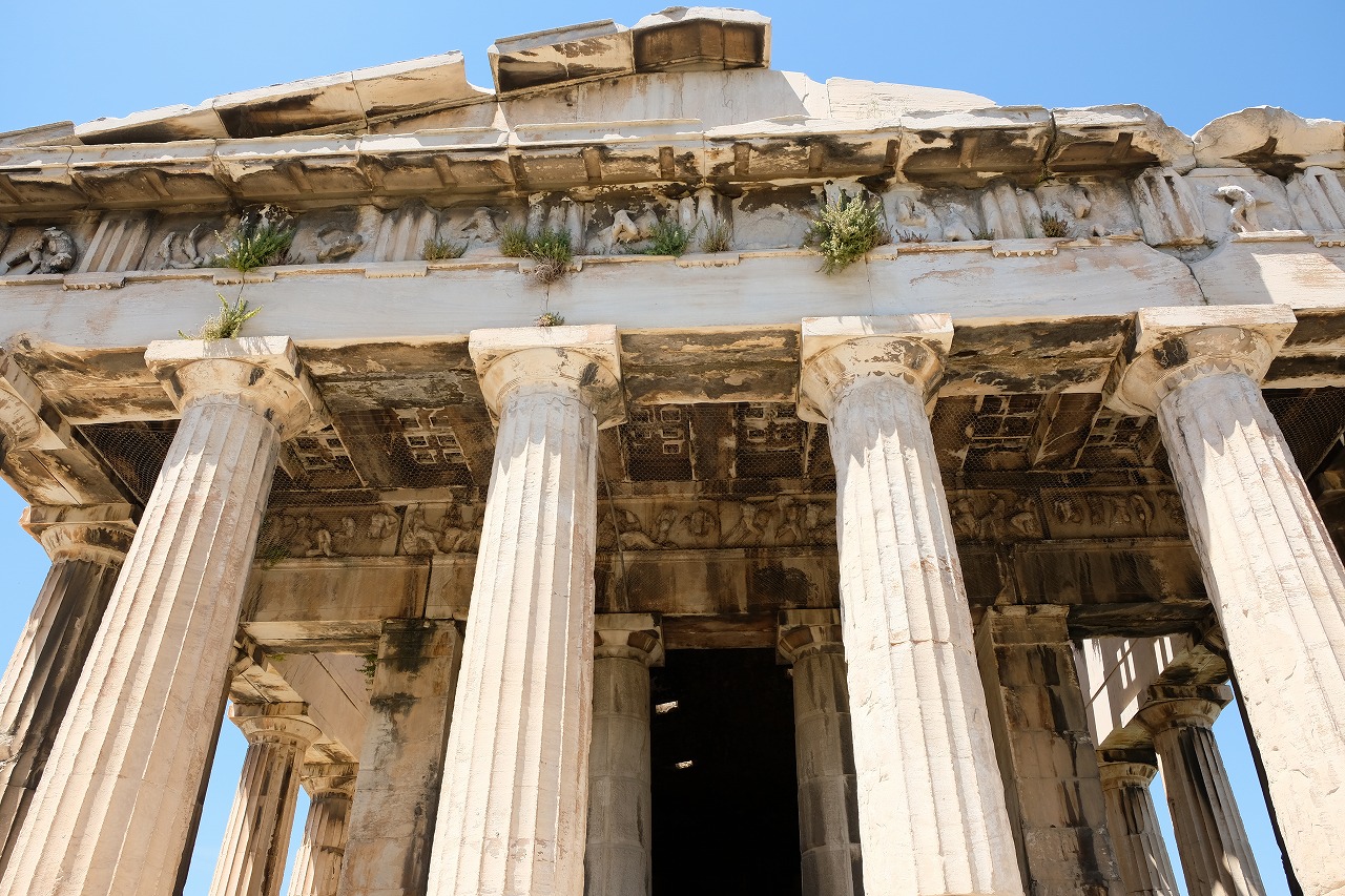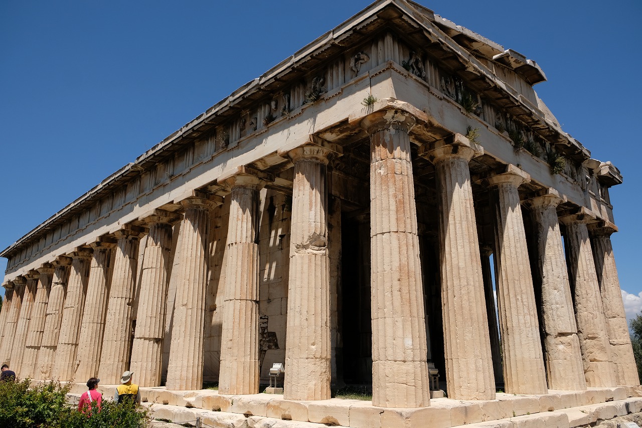 古代アゴラにあるヘファイストス神殿は小ぶりながら保存状態の良いきれいな神殿です。紀元前5世紀頃の建築ですが、すべての柱が揃っている。発掘の過程で周囲から鍛冶に関する遺物が多く見つかったためヘファイストス神殿と呼ばれている。ヘファイストスは火と鍛冶の神。