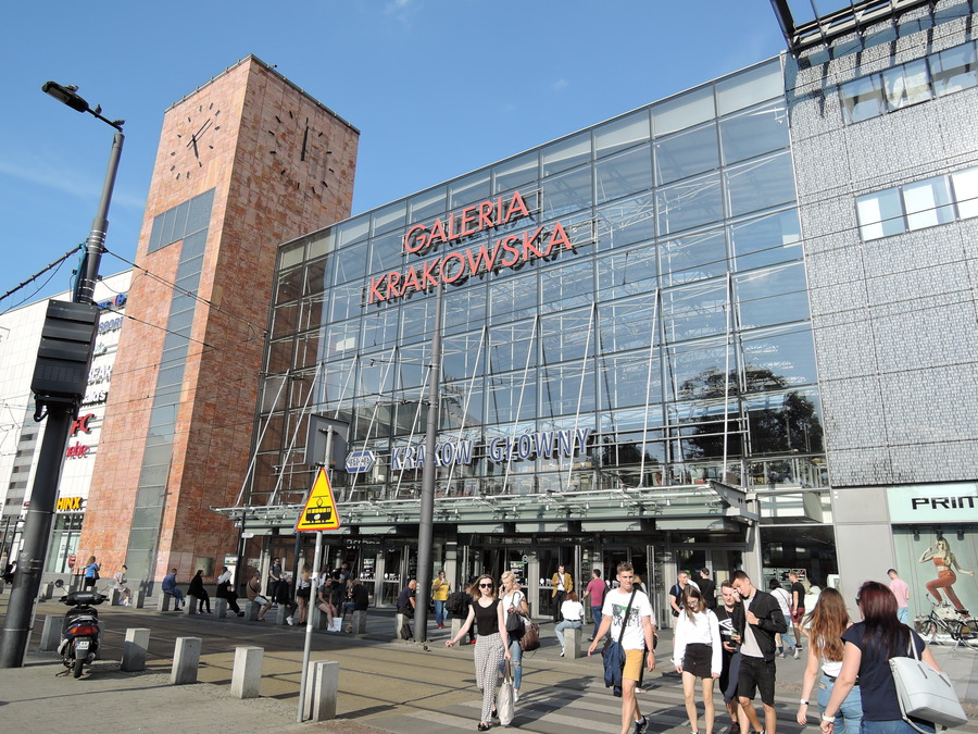 クラクフ観光の中心となるエリアにある便利なショッピングモールで、東側に中央駅、その先にバスターミナルがあります。西側出口前には路線バス乗り場、ヴィエリチカ岩塩抗行きのバスの始発停も近くにあります。
