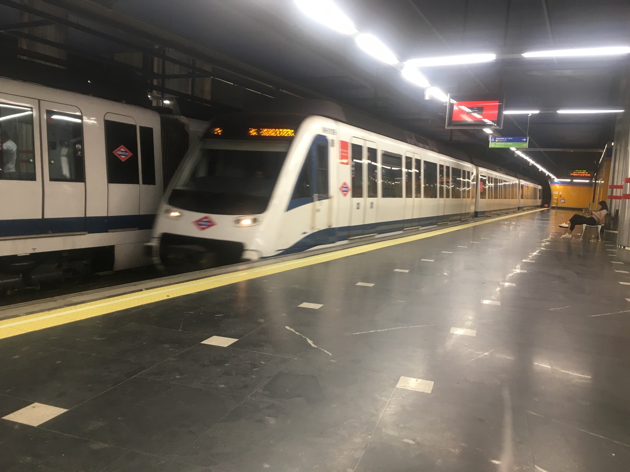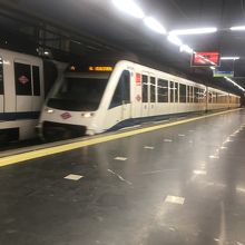 マドリード 空港から市内に行く際利用しました。ターミナル1-2-3駅からメトロ8号線に乗り終点のヌエボスミニステリオス駅でメトロ10号線に乗り換えプラサデエスパーニャ駅へ、メトロ3号線に乗り換ソル駅に到着です。乗り換えは面倒ですが掲示板に従って行けば迷うことはありません。