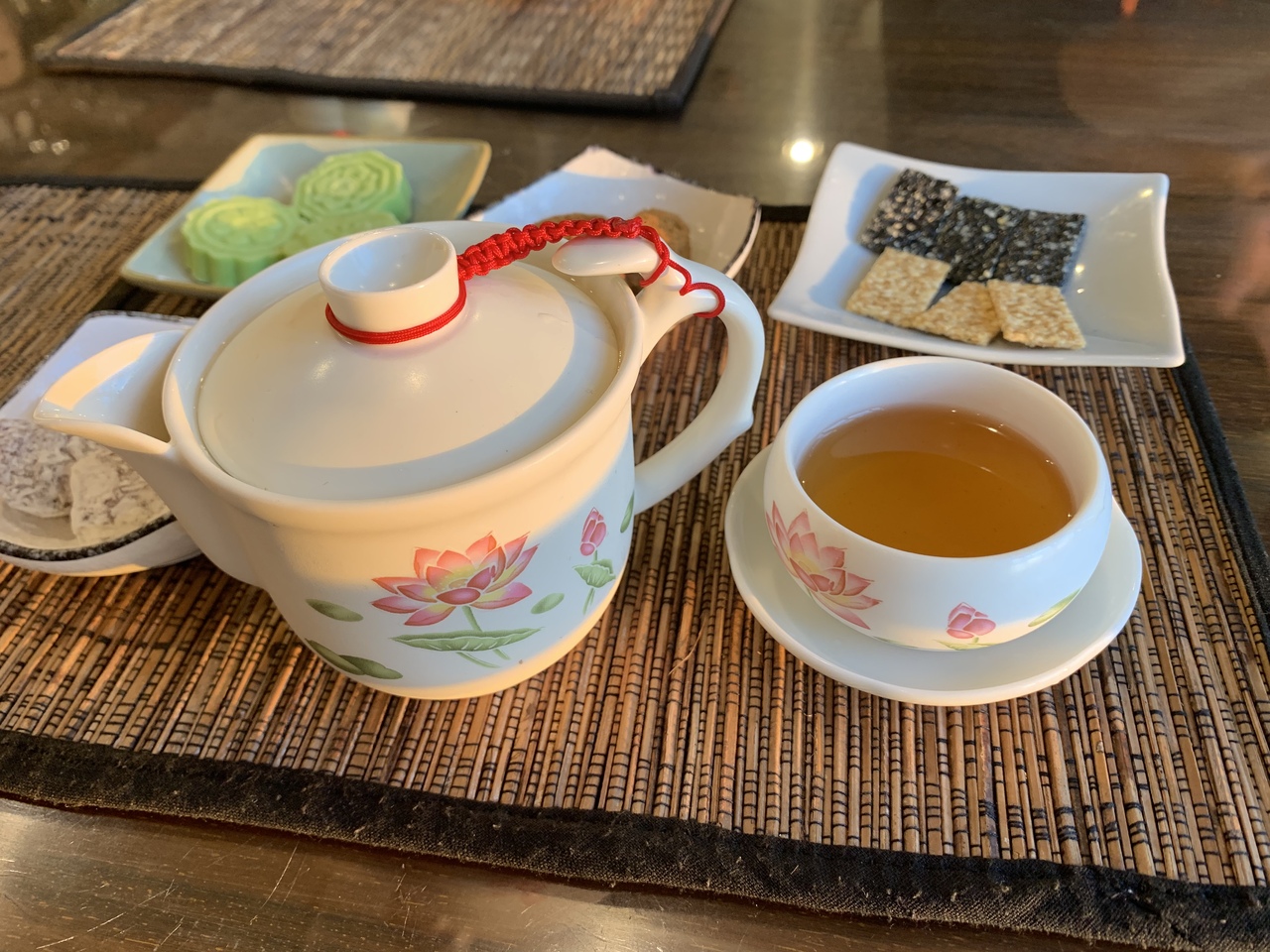 バスツアーで初めて九份に行ったので、ガイドさんがおススメするこちらのお茶屋さんに行きました。メニューはシンプルにアイスかホットか選ぶ感じでした。暑かったのでアイスにしたら、普通に急須にお茶が入っているものが出てきて、台湾の茶道?の雰囲気が味わえませんでした。すごく割高に感じましたが、窓から見える景色は綺麗でした。