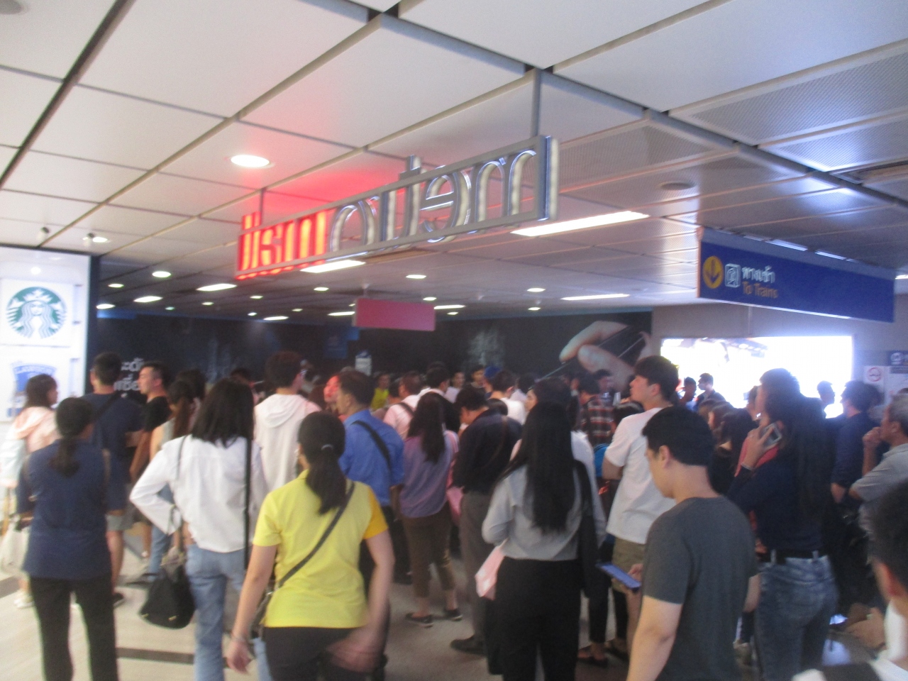 夕方のスクンビット駅に訪問すると入場規制がかかっていました。改札口に向かう階段の上で規制されており、ローカルの人はスイカのようなチャージをしているカードで改札口を通過するので、単に混雑していることによる入場規制と思料しますが、都心で見かけるような光景たったのでバンコクも東京のような慢性的な通勤ラッシュが起きつつあることを予感しました。