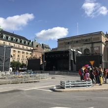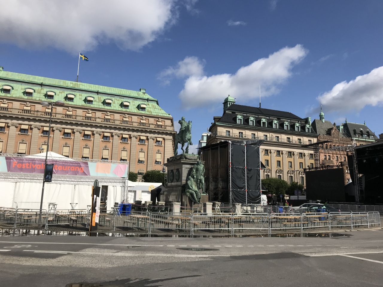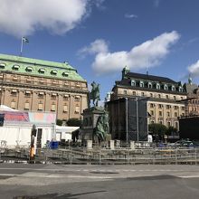 ヘランズホルメン島から橋を渡ってすぐの所にある広場です。広場の中央には、広場の由来となったグスタフ2世アドルフの騎馬像があり、像を囲うようにロータリーになっています。