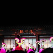 秋夕のイベントとして夜間入場の音楽会と舞踊が観覧できました。しかも入場無料。