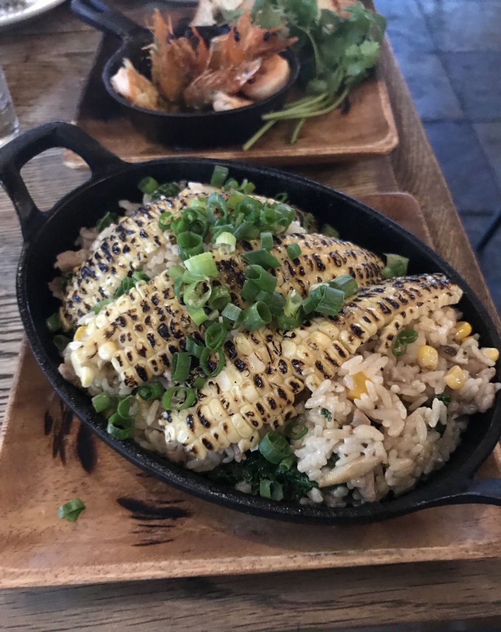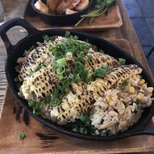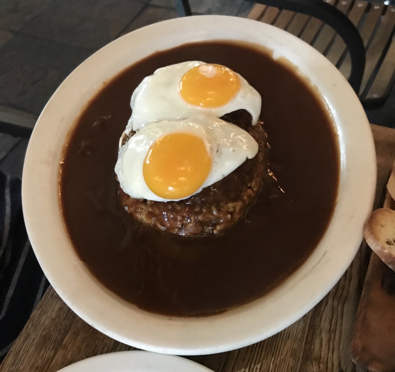 えびのアヒージョ、コーンフライドライス、ロコモコを、いただきました。