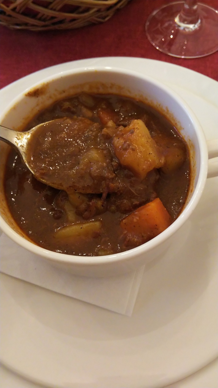 ブダペストのブダ側、王宮の丘の城壁内にある歴史的建造物を使用したホテル「セント・ジョージ」のダイニングです。ホテルのエントランスの横にレストランエントランスがあります。古い館を改装したこちら、さすが、タイムスリップした気分になれます。