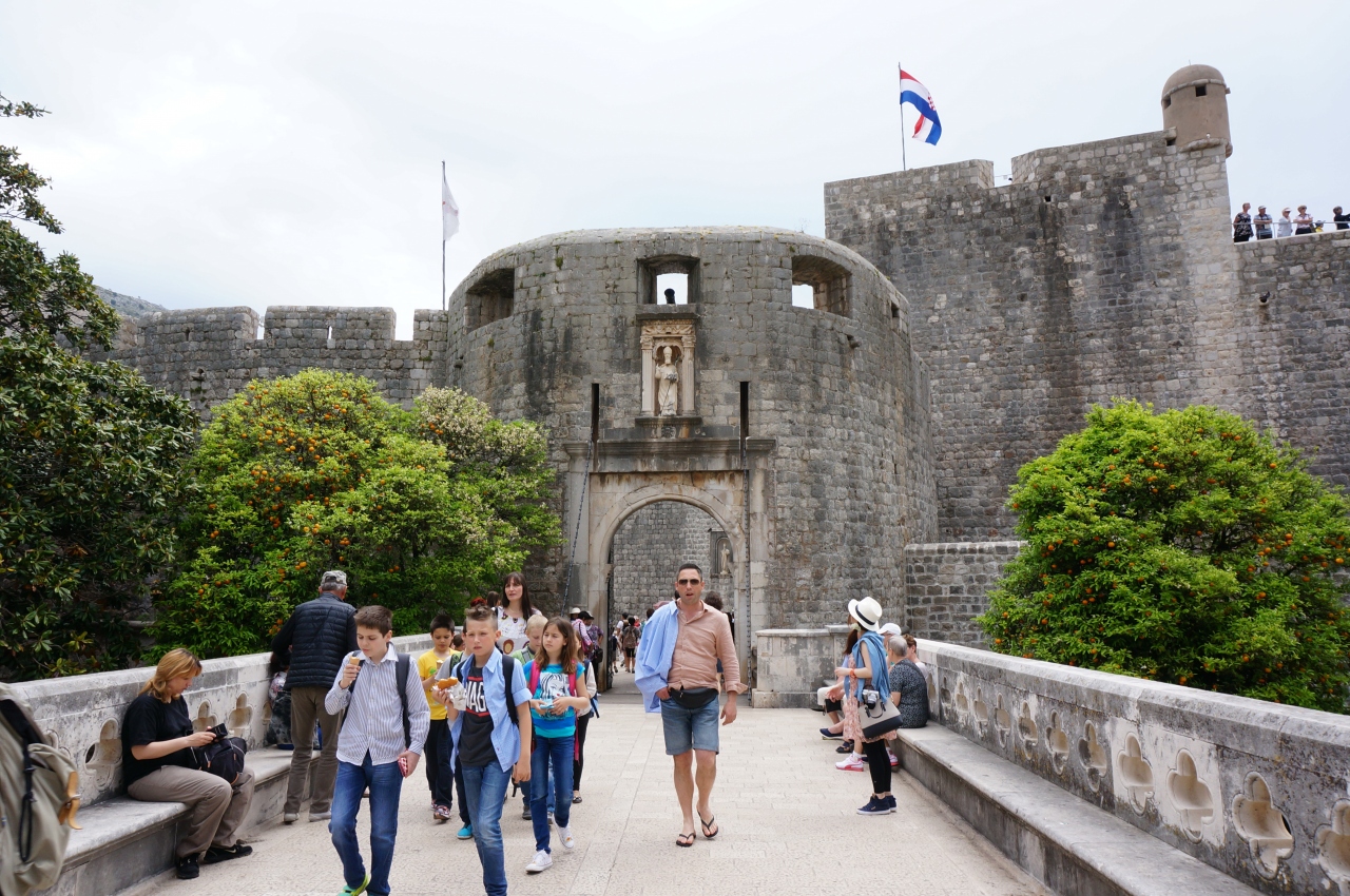ドブロブニクの城壁に囲まれた旧市街地への入り口であるピレ門につながる橋です。ピレ門の前にはバス停や観光案内所などもあり、メインの出入り口になっているため、そこにつながるこの橋も観光客が大勢いて混雑していました。