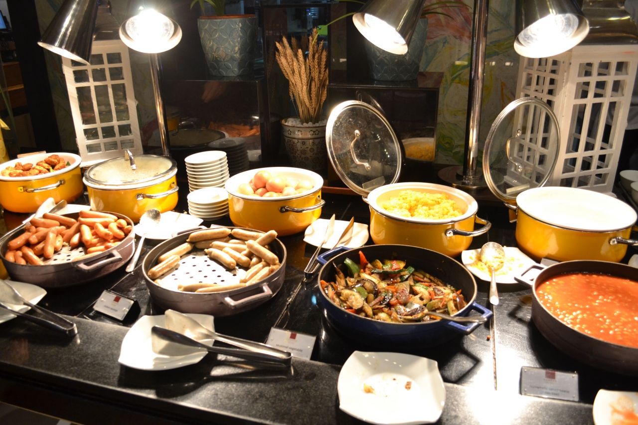 朝食の種類は豊富で、パン、シリアルから中華料理、洋食、カヤトーストまでたくさん。ジュースやデザートも豊富に揃っていました。