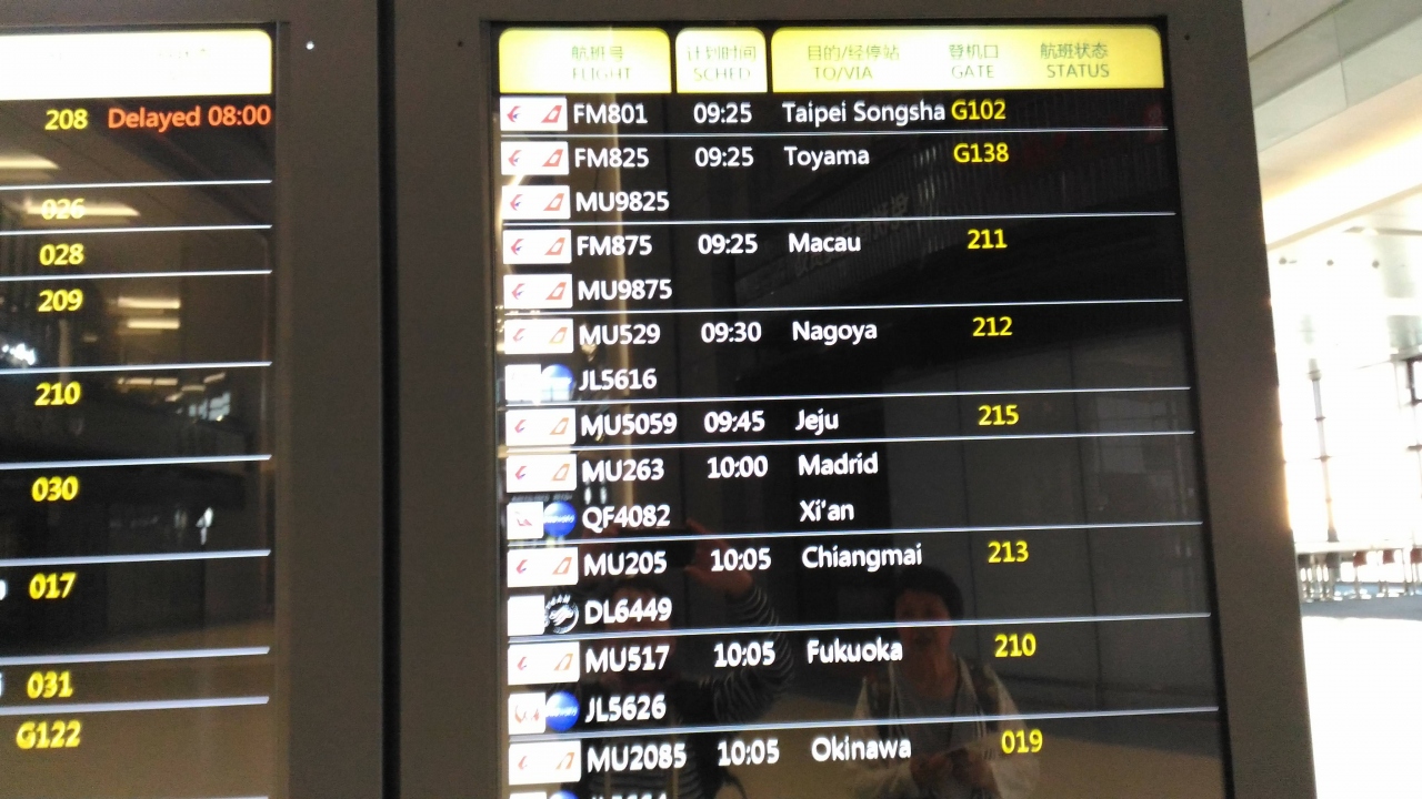 MU544便からPVGでFM825に乗り継ぐ。
