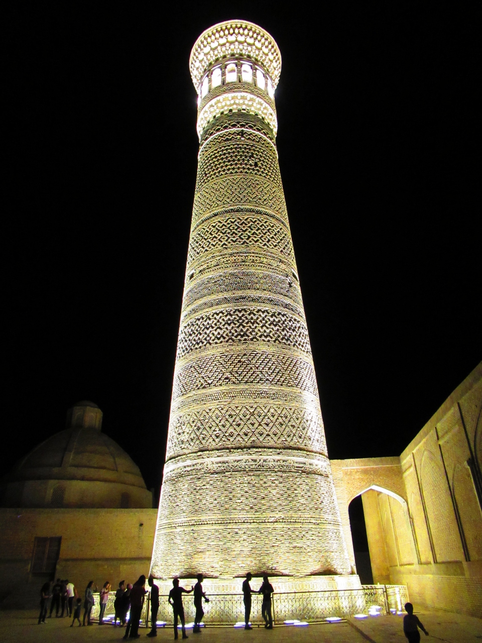 昼間に見るのももちろん、夜にライトアップされたミナレットもまた美しい。