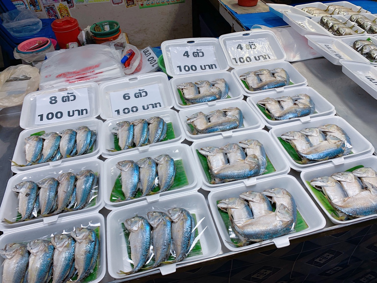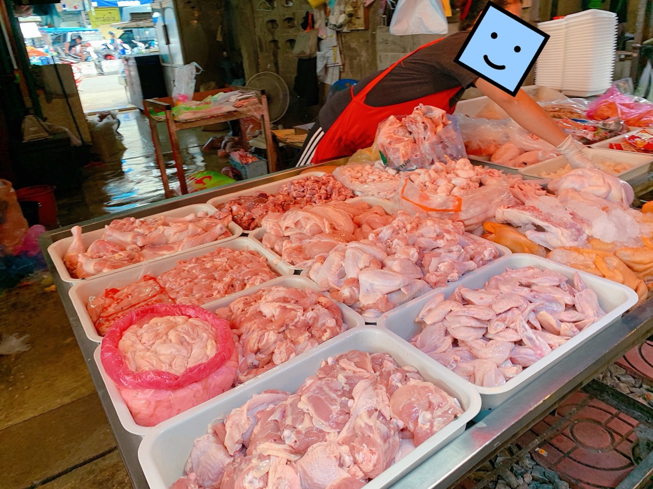 その後屋内の市場に入っていきました。こちらは生肉や生魚のにおいがします。苦手な方は苦手かもしれませんが、蒸し暑い中にこういう品物が並んでいる光景は良くも悪くもカルチャーショックを受けます。見たことのない魚介類やおもしろい売られ方をしている調味料やお惣菜。地元の方の生活を垣間見るには良い場所だなと思いました。