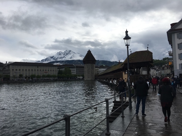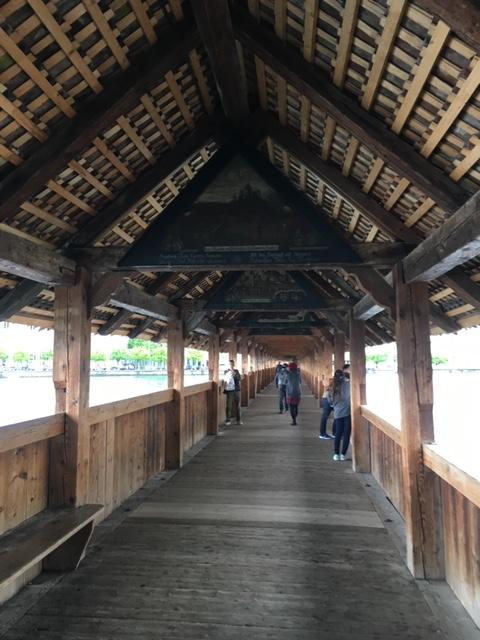 Lecern駅から歩いて数分にあるKapellbrücke(カペル橋)はヨーロッパ最古の木造橋です。
