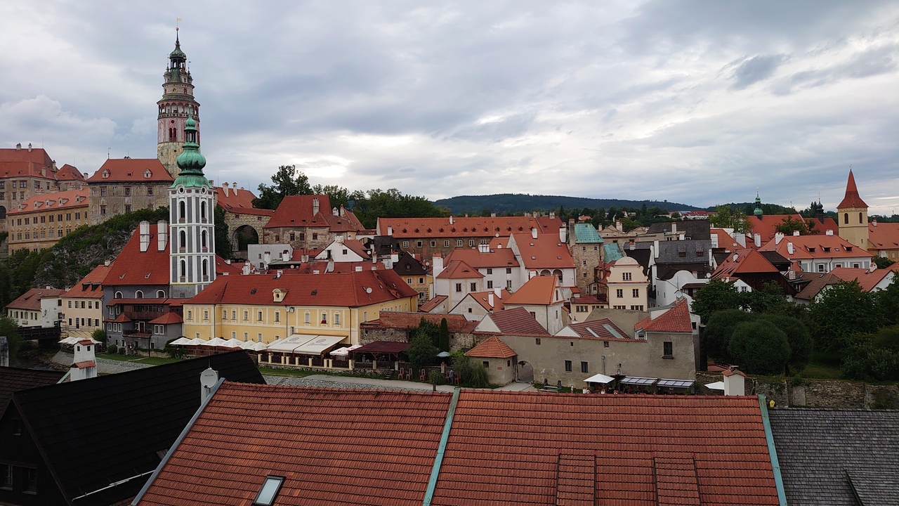 チェスキークルムロフの街を広く見渡せる庭園です。無料で気軽に入れます。そんなに高いところにあるわけではありませんが、手前の屋根は低いので広がりを感じました。見分け方としては、塔が二つ前後に並んで見えたら、そこがセミナールニーです。