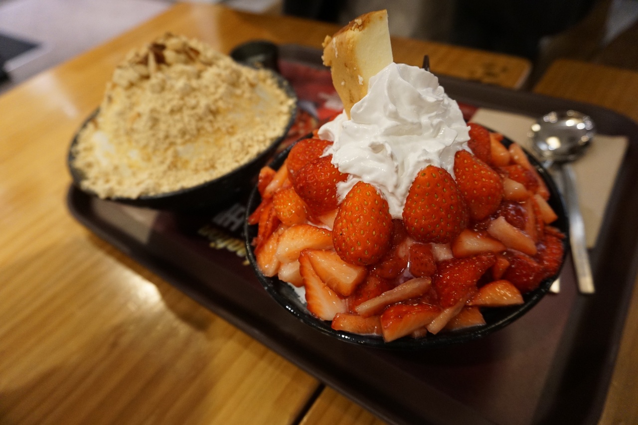夕食を食べたレストランの近くにあったのでデーザートを食べに伺いました。定番のインジョルミといちごのソルビンを注文しました。お店が結構混んでいました。ソルビンはお店で味が違うと聞いた事がありますが、おそらくシロップなどが少なめなお店な気がしました。